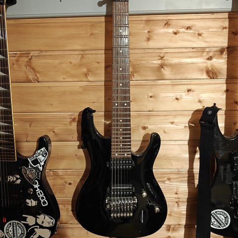 Muuten alkuperäinen mutta plektrasuoja on vaihdettu mustaan. Alkuperäinen suoja on tallessa.