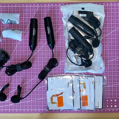 4x Comica Audio CVM-V02O -monisuuntainen lavalier-mikrofoni, jossa on XLR-liitin