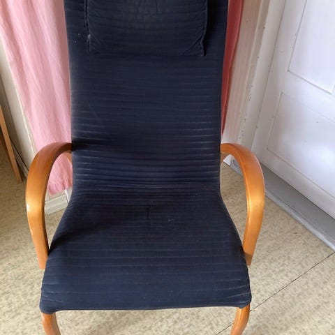 uudella Askon konkurssimyynnistä ostetulla tiilenpunaisella päällisellä. Alla siisti ja ehjä beessi alkuperäisverhoilu.