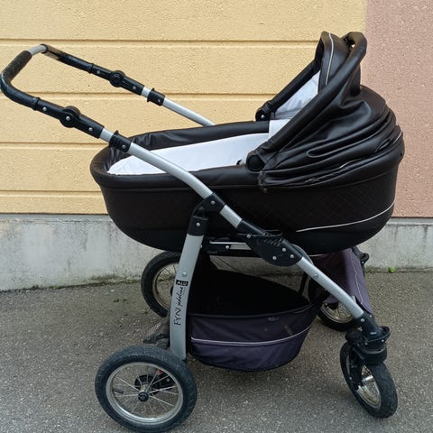 Muutaman vuoden vanhat ja paljon ajetut, mutta vielä kaikin puolin toimivat, ehjät ja ihan siistit. Etupyörät saa lukittua. Sadesuoja mukaan. Säilytetty aina sisätiloissa lämpimässä.