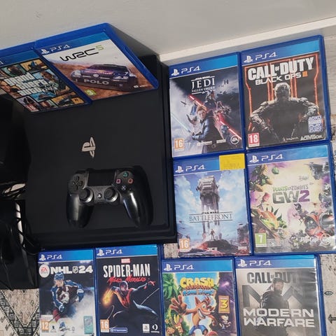 PS4 Pro 1TB + alkuperäinen Sony-ohjain + lataustelakka + useita pelejä