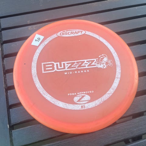 Discraft Buzzz frisbeegolfkiekko. Vaaleanvihreä muovinen kiekko, jossa violetit merkinnät. Sopii frisbeegolfiin lähestymis- ja väyläheittoihin. Kiekko on suunniteltu tarkkuusheittoihin ja yleiskäyttöön frisbeegolfradalla.
