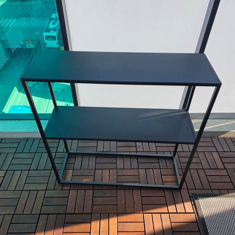Sininen sivupöytä, jota olen käyttänyt sihvapöytämä, mutta sopii myös esimerkiksi kasvin alle🌱