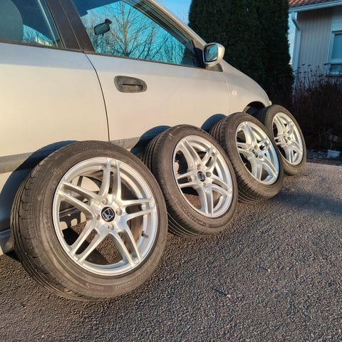 Alle 1000km alla pyörineet uutena ostetut vanteet jouten. Kolme pientä jälkeä jotka näkyvät lähikuvissa, muuten ei uusille häpeä. Venttiilit valmiina ja soviterenkaat 54,1 keskiölle mukaan.
