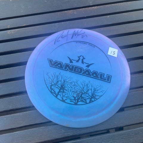 Dynamic Discs Vandal Lucid -frisbeegolfkiekko. Punainen kiekko, jossa siniset merkinnät. Sopii frisbeegolfiin väylä- tai draivikiekoksi valmistajan mallin mukaan. Muovimateriaalina Lucid, joka on kovaa ja kulutusta kestävää muovia.