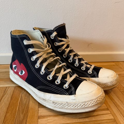 Myydään JW Anderson Converset. Käytön jälkeä löytyy, ei kuitenkaan mitään reikiä.