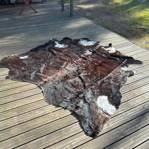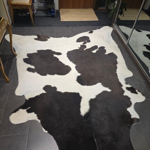 Hyvässä kunnossa oleva lehmäntaljamatto (ei aito lehmäntalja).
