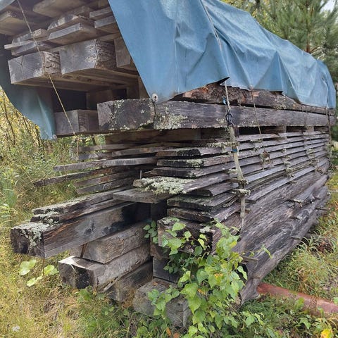 Muutaman vuoden vanhaa kenttäsahalla tehtyä lautaa ja vähän muuta.