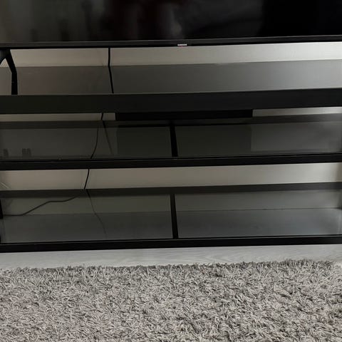 Pieni tv-taso lasiovilla.