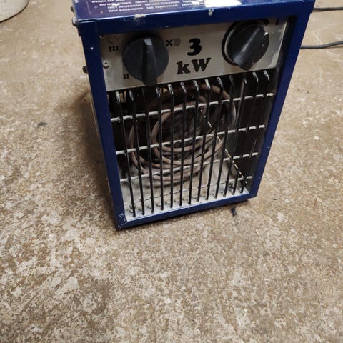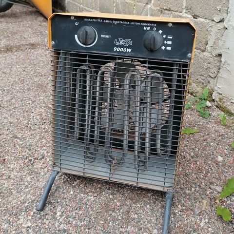Teollinen lämmitin puhallinmallia. Laitteessa on suuri etupuolen puhallinritilä ja yläosassa säätimet. Soveltuu esimerkiksi varastojen, työtilojen tai muiden tilojen lämmitykseen ja ilman kierrätykseen. Laite on siirrettävä ja varustettu termostaatilla ja ajastimella. Teho 9 kWh, vaatii voimavirran.
