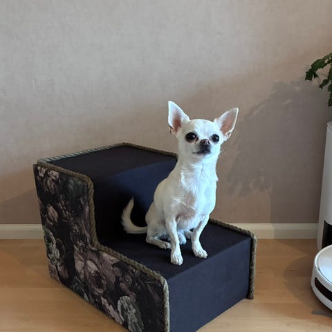 Kierrätysmateriaaleista itse tehdyt tukevat portaat lemmikille.