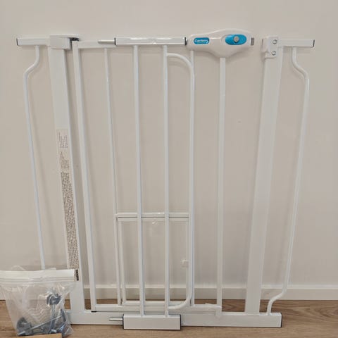 Carlson koira-/lapsiportti jatkopalalla. Leveys säädettävissä 86-143cm, korkeus 95cm.