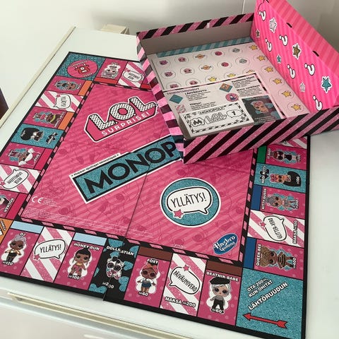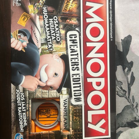 Hasbro Monopoly lautapeli 2–6 pelaajalle, suositusikä 8+ vuotta.
