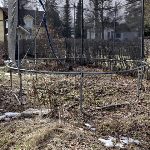 Myydään käytetty Helle trampoliini muuton tieltä. Trampoliinin koko 4,27. Yhdessä jousen kiinnikkeessä yksi kiinnike repsottaa vähän. Näkyy kuvassa 3. Muuten asiallisessa kunnossa. Mukaan tulee kaikki tarvikkeet.