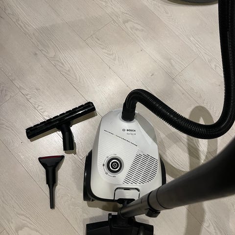 Bosch Serie 4 -perinteinen johdollinen imuri pölypussilla. Noin vuoden ollut käytössä yksiössä, ei lemmikkejä. Mukaan vaihtosuuttimet ja tähän malliin sopivat pölypussit 3kpl.
