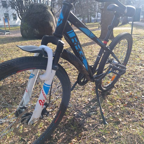Juuri huollettu 7-vaihteinen maastopyörä. Jalkajarrut. Polkimet hieman rikkoontuneet mutta ei ole menoa haitannut.