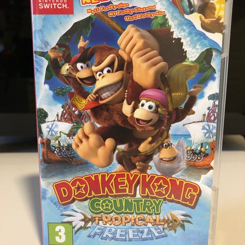 Nintendo Switch Donkey Kong Bananaza peli. Fyysinen pelikasetti ja kotelo Nintendo Switch -konsolille. Ikäraja PEGI 7. Toimintaseikkailupeli, jossa pelataan Donkey Kong -hahmolla.