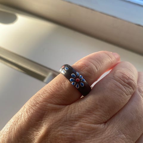 Myydään tyylikäs naisten vintage sormus turkoosi muovi Helmi