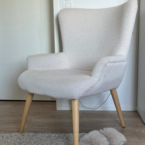 Myydään ihana Zara Homen teddy-kankainen nojatuoli. Kunto on siisti, mutta istuinosan karva on jonkin verran painunut.