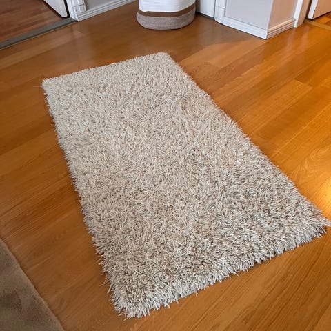Iso vaaleansininen VM Carpetin Hattara-matto. Koko 226cm x 160cm. Mattoa on käytetty paljon ja siinä on yksittäisiä tahroja, joten vaatii pesua.