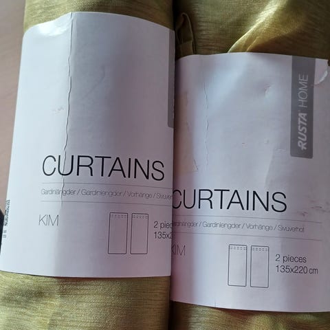 2 kpl keskenään samanlaisia verhoja/kankaita. Käyttöön joko tällaisenaan verhot tai näistä voi tehdä omaan kotiin sopivat verhot tai jos on jotain muuta ompelu- jne käyttöä. Harsomainen, kevyt, ohut ja hieno materiaali. Yläosassa kulkee kuja verhotankoa varten. Alaosa aaltoilevan mallinen. Hyvässä kuvien mukaisessa kunnossa, käyttämättömät, jotain pientä voi tarkkasilmäinen löytää.