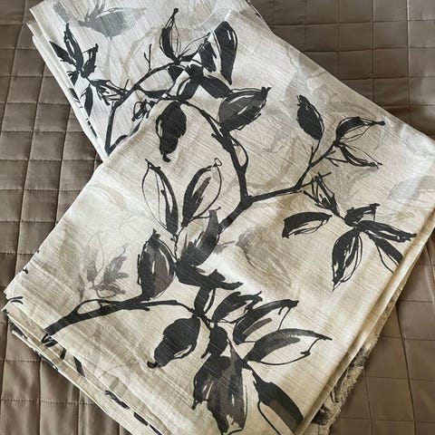 Samanlaisia verhoja 5 kpl, siistissä kunnossa. Vaalealla pohjalla vaaleita raitoja. Hinta 5 kpl yhteensä.