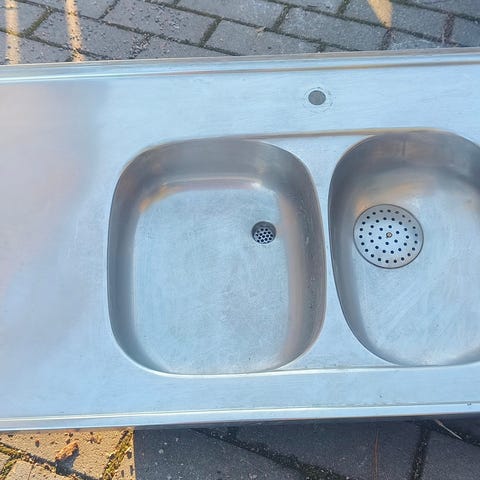 Myydään teräksinen allastaso ja hana.