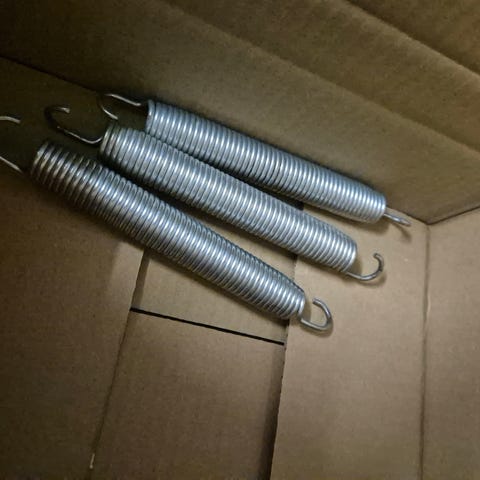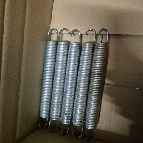 Acon trampoliinin 21.5cm jousia, seassa saattaa olla myös jäykempiä 21cm jousia. Purettu toimivasta 4.3m trampasta kesän jälkeen.