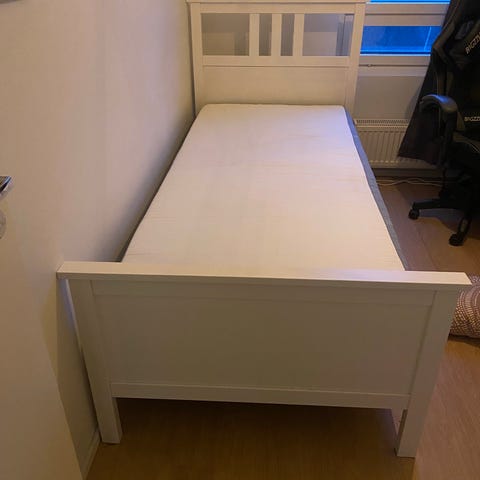 Ikean Hemnes sängynrunko, joustinpatjat (2x90cm) ja sijauspatja (180cm). Sängyn alla Songesand laatikot. Hyvässä kunnossa, mutta edullinen hinta koska vaatii noudettaessa sängynrungon purun.