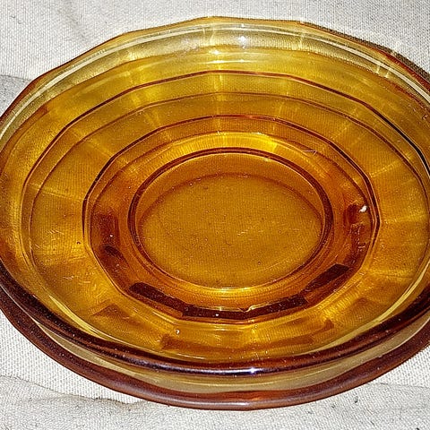 Pieniä vintage-lautasia 6kpl. Halkaisija 14cm. Kirkas lasi. Ajan patinaa.