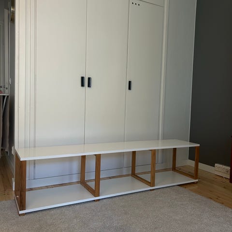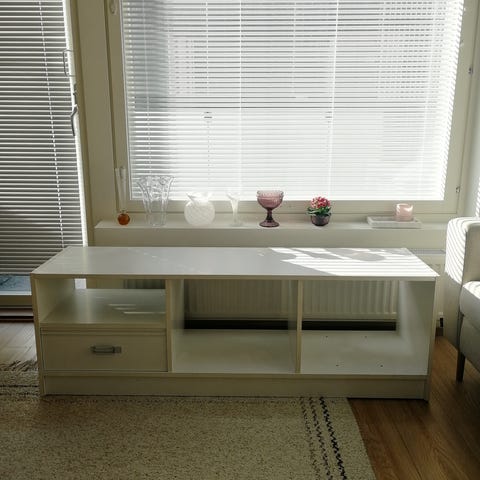 Myydään lähes uuden veroisessa kunnossa oleva kaunis tammi-valkoinen tv-taso uuden tieltä pois.