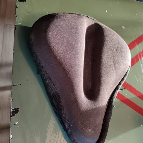 Geelipehmuste on miellyttävän tuntuinen ja pitää muotonsa hyvin. Kiristysnyörin ansioista istuinsuoja pysyy hyvin paikoillaan. Ollut kuntopyörän satulassa pari kertaa. Ei ollut ulkona. Kuin uusi.