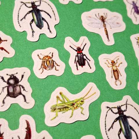 Lapsenomaisella tyylillä kuvitettu tarra veikeästä joukosta eläimiä. Tarra on peräisin SoUnfunny -nimisestä pikkukaupasta.