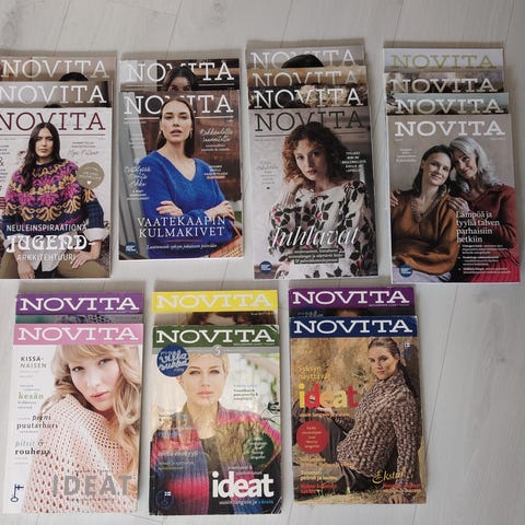 Novita neulelehdet, joissa naisten neulemallien ohjeita eri vuodenaikoihin. Lehdissä on useita malleja muun muassa villapaitoihin, neuletakkeihin ja kesäneuleisiin. Soveltuvat neulontaan ja uusien neuleprojektien suunnitteluun.