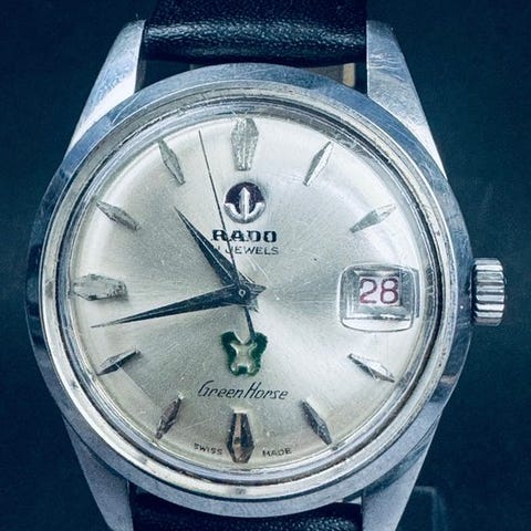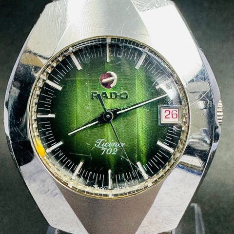 KuvausTapaus: 36 mm (läpimitta kruunua lukuun ottamatta) x 40 mm (lapa-lapa); medaali puuttuu Kellon osoitin: Pronssin värinen kellotaulu hopea/valkoiset osoittimet ja merkitKristalli: LasiPäivä/ kuukausi: Toimiiranneke: Jälkikäteen hankittu (käytetty)Lappien leveys: 19 mmPää mukaan lukien pituus: Vapaa kokoHuoltotiedot: TuntematonVakuutettu lähetys seuraavilla tavoilla:Paikallinen lähetys: Paikallinen rekisteröity postilähetysKansainvälinen lähetys: DHL ExpressTÄRKEITÄ HUOMIOITA!! OLE HYVÄ TIETÄÄ ennen HUUTAMISTA!!1. Kellon on myyty tällaisessa kunnossa. Ellei toisin ole mainittu, takuuta ei myönnetä ja ajankäytön tarkkuuteen, vedenpitävyyteen jne. liittyviä vaatimuksia ei oteta huomioon tai käsitellä.2. Ostaja vastaa mahdollisista lisäveroista ja/tai arvonlisäveroista, joita kullekin maalle veroviranomaiset voivat periä. Ole siis yhteydessä asiaankuuluviin viranomaisiin, jos et ole varma ja tee tarjous sen mukaan. Mikäli ostaja ei noudata verojen maksua, hän vastaa kaikista toimitukseen, tullaukseen ja muuhun hallinnolliseen kustannukseen.3. Mikäli tilaus peruutetaan ostajan harkinnan mukaan lähetyksen jälkeen, ostaja vastaa kaikista palautuslähetyksen kuluista, hallinnollisista ja tullikuluista, jotka liittyvät kellon palaamiseen ja uudelleentuloon maahan.4. Kansainvälinen kuljetus (tullauksen ja viimeisen mailin toimituksen sietämiseksi pois lukien) kestää yleensä jopa 2 viikkoa, mutta voi kestää kauemmin maasta ja sijainnista, julkisista juhlapäivistä, Ukrainan sodan tilanteesta, maailmanlaajuisesta pandemiatilanteesta jne. riippuen.5. Huomaa myös, ettei meillä ole vaikutusvaltaa tai hallintaa siihen, miten nopeasti jokaisen maan tulliviranomainen käsittelee saapuvan lähetyksen. Tarkista siis tulliviranomaiseltasi/postipalvelulta, kun kohde maahan saapuu.