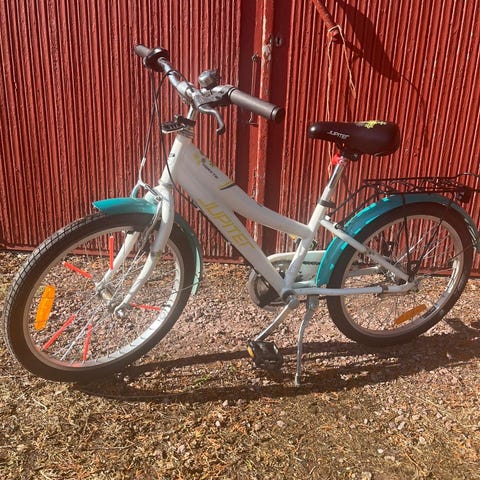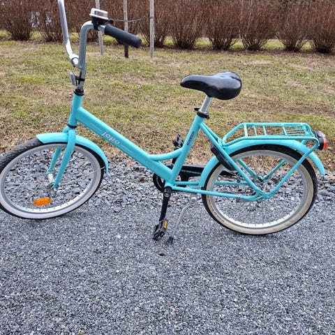 Myydään pieneksi jäänyt lasten polkupyörä, jossa 20" renkaat. Käsi- ja jalkajarru, seisontatuki, lokasuojat sekä tavarateline takana. Satula on ehjä.
