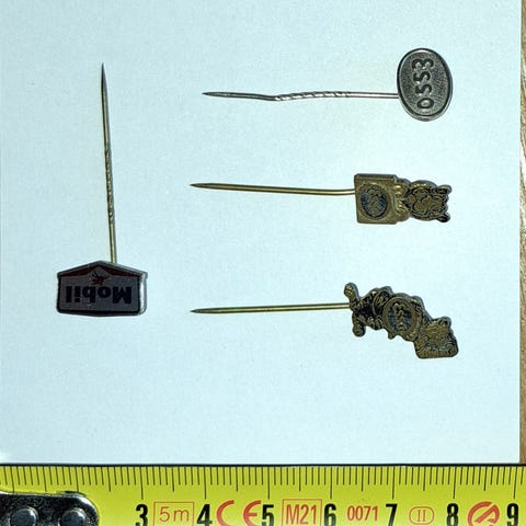 Myydään legendaarisen huoltoasemaketju- Esson pinssit, sopii vaikkapa pinssikeräilijälle, huoltoasema-harrastajalle, äijäluolaan koristeeksi. Myydään luonnollisesti settinä. En postita, katso myös muut ilmoitukseni. Hakusanat: Esso, ESSO, huoltoasema, pinssi, keräily, tiikeri