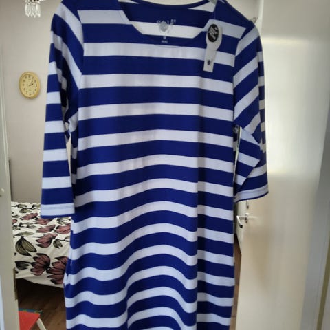 Polan tunika koossa M. Mustapohjainen, valkoisella kuviolla koristeltu mekko, jossa 3/4-hihat ja vartalonmyötäinen malli. Materiaalina Viskoosi /elastaan .Sopii arki- ja vapaa-ajan käyttöön. kai- kai mitta 50ja pituus 81cm.