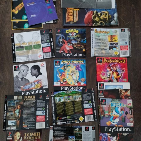 Suurimmalta osin siistit, aikaa nähneet ja käytönjälkiä löytyy. Ohjekirjat on tarkoitettu alkuperäisen PlayStation-konsolin (PS1) peleihin.
