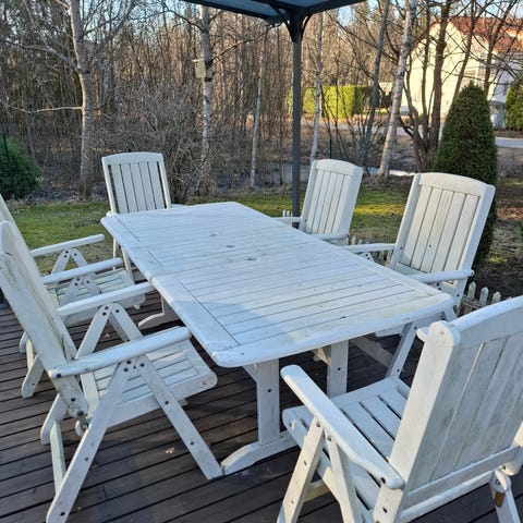 Myydään huoltovapaa ruokaryhmä, pöytä ja 6 tuolia.