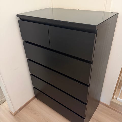 Siisti ja tukeva lipasto, sopii hyvin makuuhuoneeseen tai eteiseen.