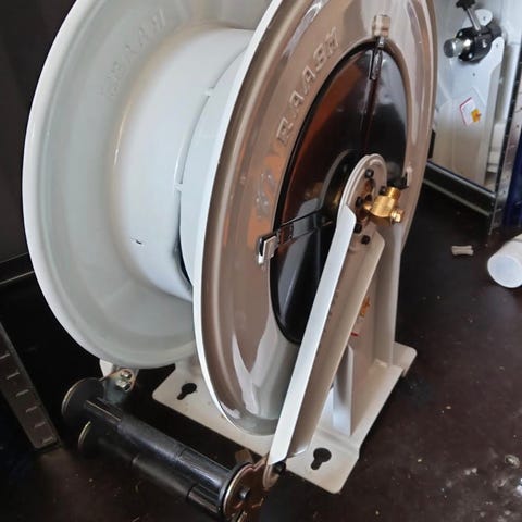 Käsinkelattava letkukela ilman letkua. Kelaan mahtuu 25-m - 1/2” , 35-m - 3/8” tai 90-m - 1/4” letkua.