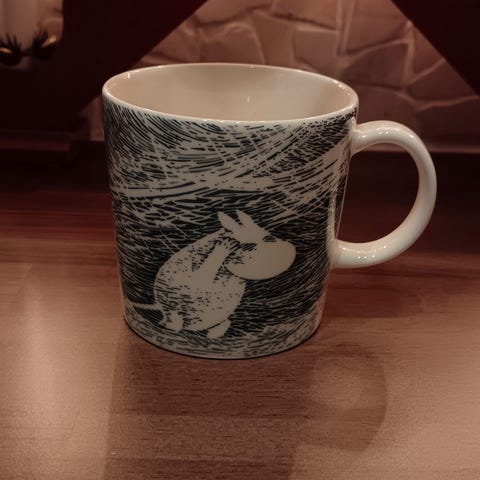muumimuki ja kulho "saippuakuplia"