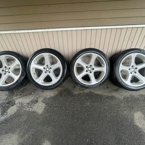 Takaset (renkaissa merkinnät 315/35ZR20), vajaa kaks kesää.