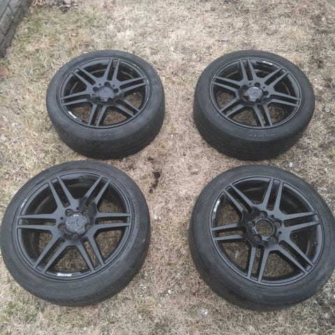 Siitä myyntiin kaksi kappaletta 9 leveitä 18" vanteita. Renkaat alkaa olemaan kohtuu sileät. Keskireikä ainakin mersuun sopiva