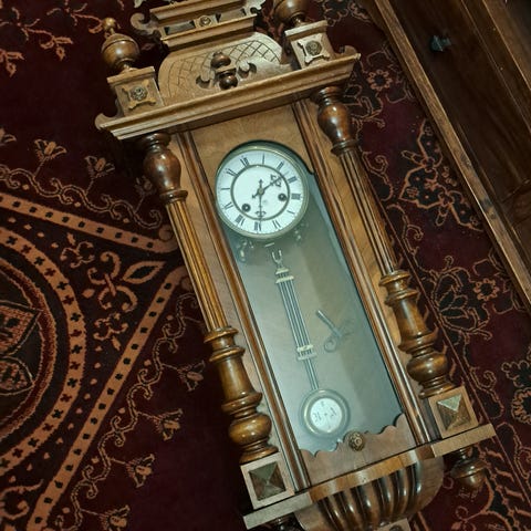 Hieno vanha seinäkello 1800-luvulta. Toimii ja lyö puolet sekä tasatunnit. Maksu käteisellä noudettaessa.