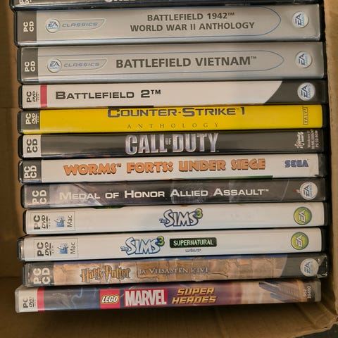 Tarkemmat pelinimet, levymäärät ja mahdolliset puuttuvat osat kannattaa tarkistaa kuvista. Soveltuu PC-tietokoneelle, jossa on yhteensopiva CD-asema ja käyttöjärjestelmä, joka tukee kyseisiä pelejä.