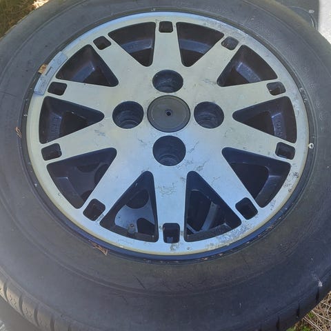 Tuli joskus sierran mukana, jäänyt lojumaan varastoon. Kumit täysin kypsät, mutta itse vanteet OK.