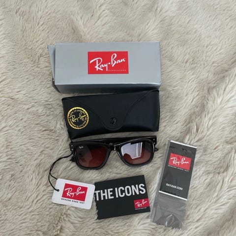 Ray-Ban aurinkolasit unisex-käyttöön. Metallikehykset ja tummat linssit. Sopivat sekä miehille että naisille. Mukana Ray-Ban-kotelo kuvien mukaisesti.