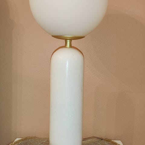 Siro moderni lattiavalsisin jossa musta marmorijalka ja 3 opaalilasikupua. Lampun rungon kierteet puuttui yhdestä varresta, on liimattu kiinni eikä enää voi purkaa. Himmennin myös ei joko toimi tai sitten meillä on vääränlaiset lamput (välkkyy maximi asennossa, pysyy kuitenkin välkkymättä kun oikessa kohdassa ja himmeämmät ei välky). Lamppu on ison marmorijalan vuoksi painava.